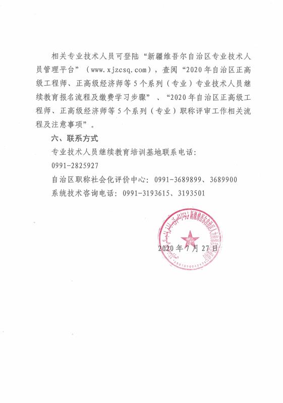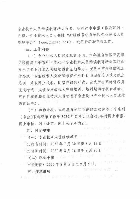 关于开展2020年度自治区正高级工程师、正高级经济师等5个系列(专业)专业技术人员继续教育培训及职称评审工作的通知