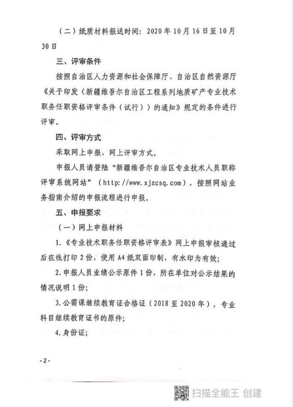 关于开展2020年度自治区地质矿产专业(初、中级)技术职务任职资格评审工作的通知