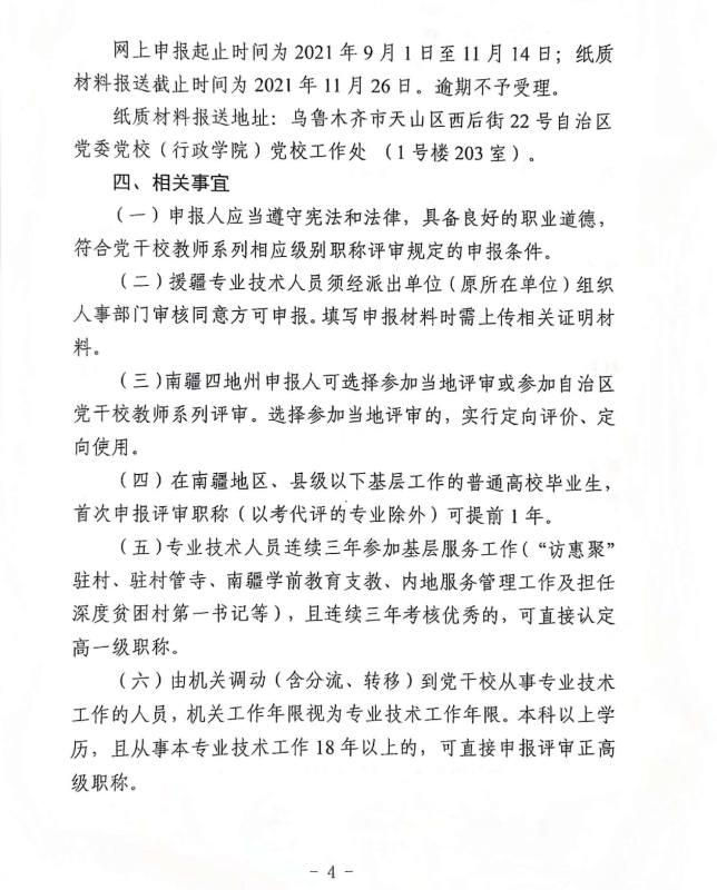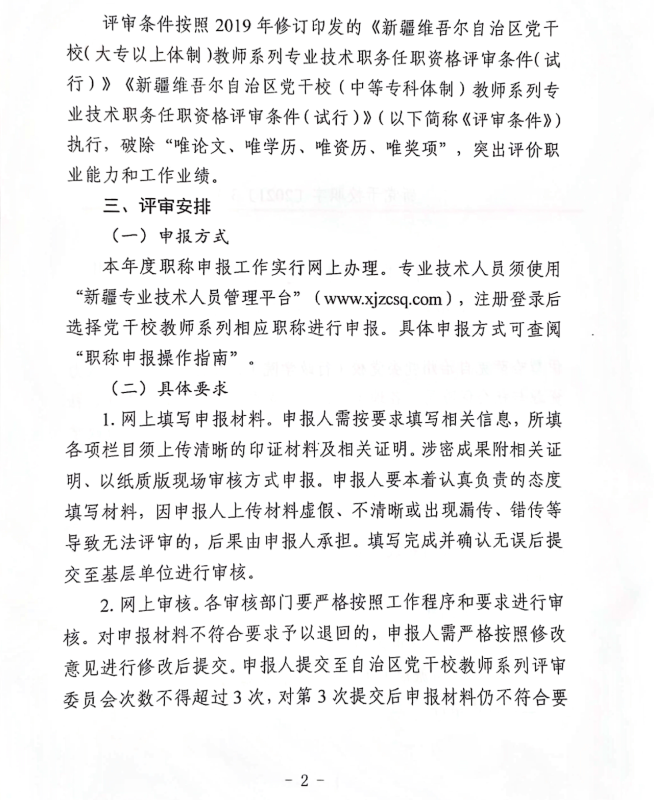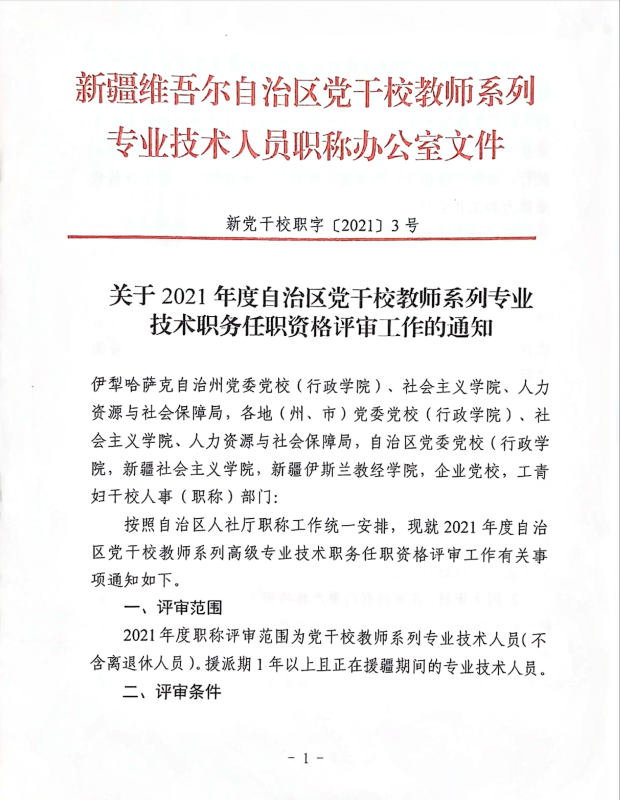 >关于2021年度自治区党干校教师系列专业 技术职务任职资格评审工作的通知