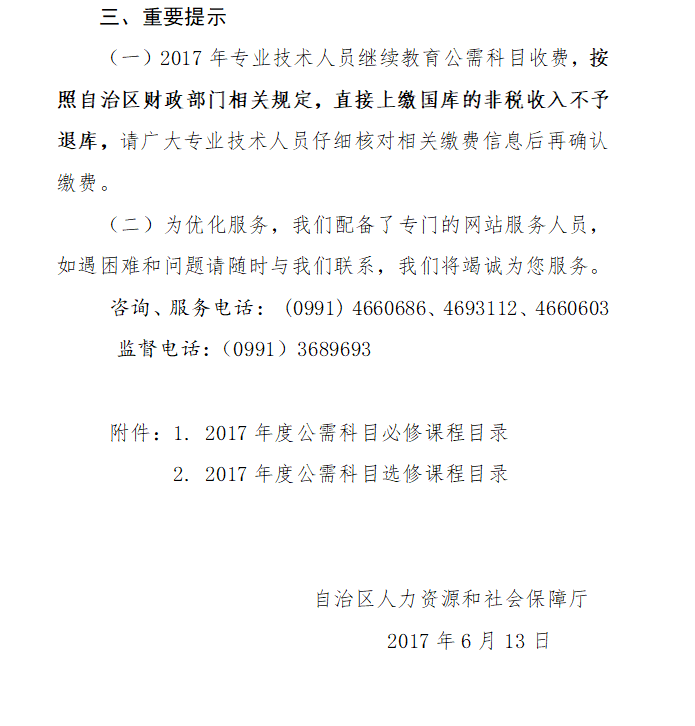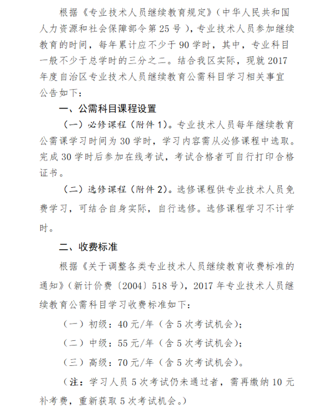 关于2017年度自治区专业技术人员继续教育 公需科目学习相关事宜的公告